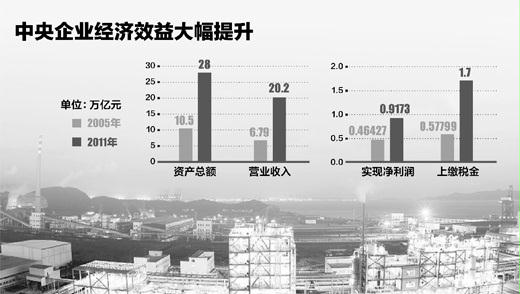 “十一五”期間,中央企業(yè)資產(chǎn)總額、營(yíng)業(yè)收入、上繳稅金和稅后凈利潤(rùn)均實(shí)現(xiàn)了翻番