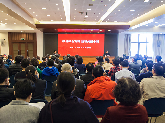 為進(jìn)一步學(xué)習(xí)貫徹黨的十九大精神,深刻領(lǐng)會(huì)習(xí)近平總書記關(guān)于生態(tài)文明建設(shè)的系列講話精神,指導(dǎo)公司更好地開展相關(guān)工作,3月15日上午,公司邀請(qǐng)國家發(fā)展和改革委員會(huì)資源節(jié)約和環(huán)境保護(hù)司司長任樹本,以《推進(jìn)綠色發(fā)展 建設(shè)美麗中國》為題作專題講座。公司領(lǐng)導(dǎo)、資深專家,公司各部門和所屬企業(yè)職工170余人參加。公司黨委副書記、副總經(jīng)理?xiàng)顤|民主持講座。