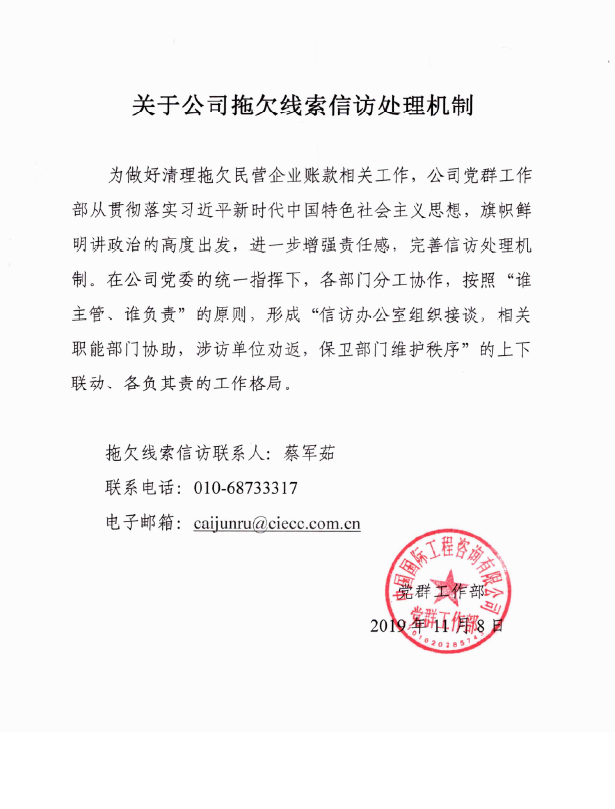 關(guān)于公司拖欠線索信訪處理機(jī)制及聯(lián)系方式