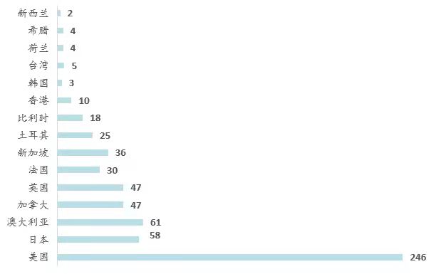 圖1 全球主要國(guó)家和地區(qū)發(fā)行REITs數(shù)量分布