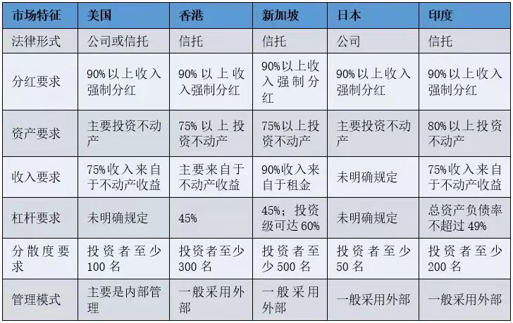 表1 REITs產(chǎn)品主要市場(chǎng)特征對(duì)比