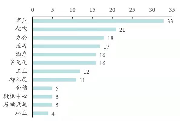 圖2 美國(guó)權(quán)益型REITs行業(yè)數(shù)量分布情況