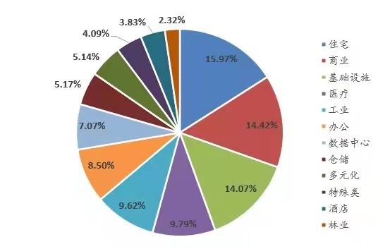 圖3 美國(guó)權(quán)益型REITs市值行業(yè)分布情況