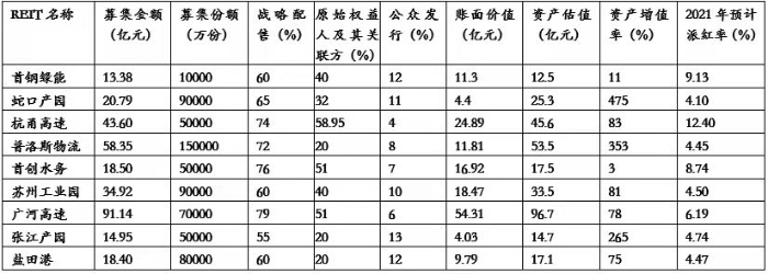 我國(guó)于2021年6月21日在滬深證券交易所首批上市的9只REITs產(chǎn)品,有5只產(chǎn)權(quán)類項(xiàng)目,包括3只產(chǎn)業(yè)園和2只倉(cāng)儲(chǔ)物流,以及4只特許經(jīng)營(yíng)類項(xiàng)目,包括2只收費(fèi)公路、1只污水處理和1只垃圾處理及生物質(zhì)發(fā)電項(xiàng)目。
