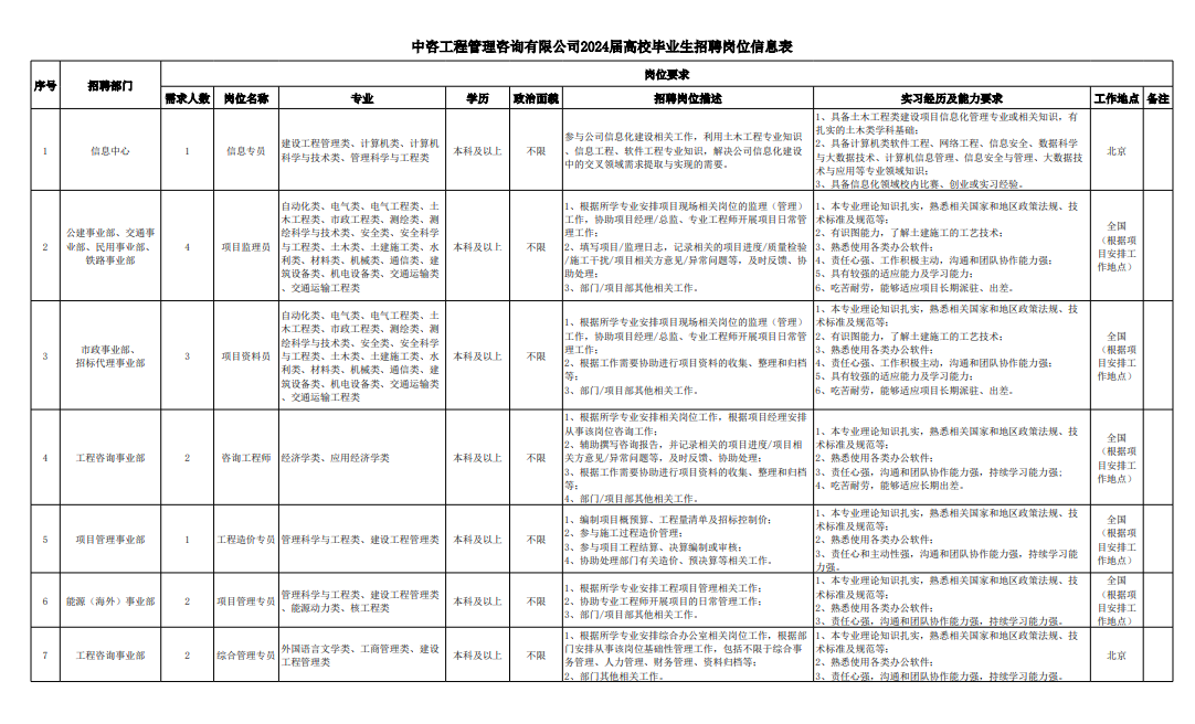 中咨(北京)項目管理發(fā)展有限公司招聘崗位信息