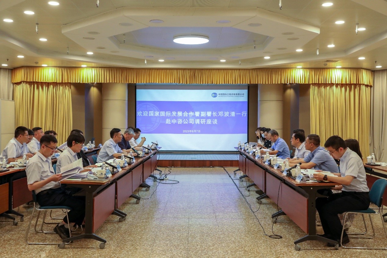 6月7日下午,國家國際發(fā)展合作署(以下簡稱國合署)副署長鄧波清一行深入中咨公司調(diào)研,并就加快推動對外援助工作與中咨公司黨委書記、董事長、總經(jīng)理茍護生進行座談交流。