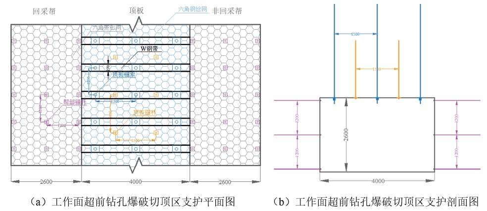 (一)工作面超前鉆孔爆破切頂區(qū)支護(hù)設(shè)計(jì)