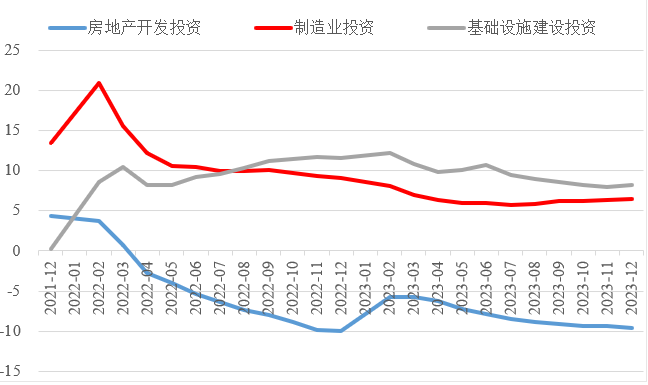 2023年,面對世界經(jīng)濟復(fù)蘇乏力、國內(nèi)自然災(zāi)害頻發(fā)、改革發(fā)展穩(wěn)定任務(wù)艱巨等多重挑戰(zhàn),我國經(jīng)濟回升向好,經(jīng)濟轉(zhuǎn)型升級深入推進。投資對優(yōu)化供給結(jié)構(gòu)的關(guān)鍵作用更加凸顯,制造業(yè)投資持續(xù)向好,高技術(shù)產(chǎn)業(yè)投資占比穩(wěn)步提高。同時,房地產(chǎn)投資仍未見底、民營經(jīng)濟發(fā)展面臨較大壓力、地方政府債務(wù)擴展及外溢風(fēng)險等突出問題制約投資持續(xù)穩(wěn)定增長。做好2024年投資促進工作,需積極擴大有效益的投資,多舉措激發(fā)民間投資內(nèi)生動力,全力穩(wěn)定房地產(chǎn)投資預(yù)期,適度增加地方政府專項債券規(guī)模,加大重點領(lǐng)域補短板投資。 一、2023年整體投資增速有所放緩 2023年,我國固定資產(chǎn)投資(不含農(nóng)戶)同比增長3%,增速較上年下降2.1個百分點,較前三季度、上半年、一季度分別下降0.1個、0.8個、2.1個百分點,固定資產(chǎn)投資增速逐季放緩。1—11月,建安工程、設(shè)備工器具購置、其他費用分別增長2.1%、6.7%、3.1%,建安工程投資增速明顯低于設(shè)備工器具購置投資增速,說明房屋、建筑物和設(shè)備裝置安裝等投資的活躍程度有所下降,體現(xiàn)技術(shù)水平的設(shè)備工器具投入增長加快。 圖1 全國固定資產(chǎn)投資增速(%) 數(shù)據(jù)來源:國家統(tǒng)計局 (一)民間投資動力不足。2023年,新冠疫情防控平穩(wěn)轉(zhuǎn)段,疫情產(chǎn)生的“疤痕效應(yīng)”仍待消除,需求收縮、供給沖擊、預(yù)期轉(zhuǎn)弱三重壓力尚在,民營企業(yè)面臨市場競爭加劇、利潤率下降、轉(zhuǎn)型升級難度增大、融資難融資貴等突出困難。全年民間固定資產(chǎn)投資253544億元,同比下降0.4%,較上年低了1.3個百分點,低于投資整體增速3.4個百分點。截至2023年12月底,我國民間固定資產(chǎn)投資已連續(xù)8個月負增長,民間固定資產(chǎn)投資占比連續(xù)7個月下降,跌至2011年以來的最低點,僅為50.4%,民間投資信心有待進一步提振。 圖2 民間投資增速及占比(%) 數(shù)據(jù)來源:國家統(tǒng)計局,Wind數(shù)據(jù)庫 (二)制造業(yè)投資保持較高韌性,房地產(chǎn)投資持續(xù)低迷。在中央預(yù)算內(nèi)投資、地方政府專項債等資金的引導(dǎo)帶動下,基礎(chǔ)設(shè)施和制造業(yè)投資支撐作用更加顯著。2023年,中咨公司累計運行項目8421項,其中基礎(chǔ)設(shè)施投資與制造業(yè)投資項目占比近8成。我國計劃總投資億元及以上項目投資同比增長9.3%,拉動全部投資增長4.8個百分點,大項目投資帶動作用明顯。2023年,基礎(chǔ)設(shè)施投資同比增長8.24%,高于整體投資5.24個百分點,較2019年高了4.91個百分點。其中,鐵路運輸業(yè)投資、水利管理業(yè)投資分別增長25.2%、5.2%。制造業(yè)投資同比增長6.5%,高于整體投資增速3.5個百分點,較2019年高了3.4個百分點。制造業(yè)投資仍保持較高韌性,傳統(tǒng)產(chǎn)業(yè)高端化綠色化智能化轉(zhuǎn)型加快,電氣機械和器材制造業(yè)、汽車制造業(yè)投資分別增長32.2%、19.4%。 表1 1—12月我國各行業(yè)固定資產(chǎn)投資情況 數(shù)據(jù)來源:國家統(tǒng)計局,Wind數(shù)據(jù)庫 2023年,房地產(chǎn)開發(fā)投資增速持續(xù)放緩,房地產(chǎn)開發(fā)投資、住宅開發(fā)投資分別同比下降9.6%、9.3%。房地產(chǎn)開發(fā)投資占固定資產(chǎn)投資完成額的比重降至22%,較上年下降1.2個百分點,為3年以來最低值。房屋施工面積、房屋新開工面積等先行指標(biāo)均出現(xiàn)明顯下滑,分別同比下降7.2%、20.4%。1—12月,國房景氣指數(shù)均位于100以下,自4月以來持續(xù)走低。 圖3 三大領(lǐng)域固定資產(chǎn)投資增速(累計同比,%) 數(shù)據(jù)來源:國家統(tǒng)計局,Wind數(shù)據(jù)庫 高技術(shù)產(chǎn)業(yè)投資引領(lǐng)帶動作用持續(xù)增強,集成電路、高端芯片、儀器儀表設(shè)備等領(lǐng)域關(guān)鍵核心技術(shù)攻關(guān)扎實推進,新能源、人工智能、生物醫(yī)藥等新興產(chǎn)業(yè)發(fā)展加快。2023年我國高技術(shù)產(chǎn)業(yè)投資增長10.3%,穩(wěn)投資引領(lǐng)作用持續(xù)顯現(xiàn)。高技術(shù)制造業(yè)投資比上年增長9.9%,增速比制造業(yè)投資高3.4個百分點。其中,航空、航天器及設(shè)備制造業(yè),計算機及辦公設(shè)備制造業(yè),電子及通信設(shè)備制造業(yè)投資分別增長18.4%、14.5%、11.1%。高技術(shù)服務(wù)業(yè)投資比上年增長11.4%,增速比服務(wù)業(yè)投資高11個百分點。其中,科技成果轉(zhuǎn)化服務(wù)業(yè)、電子商務(wù)服務(wù)業(yè)投資分別增長31.8%、29.2%。高技術(shù)產(chǎn)業(yè)引資能力不斷增強,1—11月高技術(shù)產(chǎn)業(yè)引資3866.5億元人民幣,占全國實際使用外資總額的37.2%,較2022年全年提升1.1個百分點。 圖4 高技術(shù)產(chǎn)業(yè)投資增速對比整體投資增速(累計同比,%) 數(shù)據(jù)來源:國家統(tǒng)計局,Wind數(shù)據(jù)庫 (三)東部地區(qū)投資保持較快增長,東北地區(qū)投資延續(xù)負增長。今年以來,中咨公司承接31個省市委托的項目中,東部、中部、西部和東北地區(qū)占比分別為43%、16%、36%、5%。2023年,我國東部地區(qū)投資同比增長4.4%,較全國水平高了1.4個百分點;中部、西部地區(qū)投資
