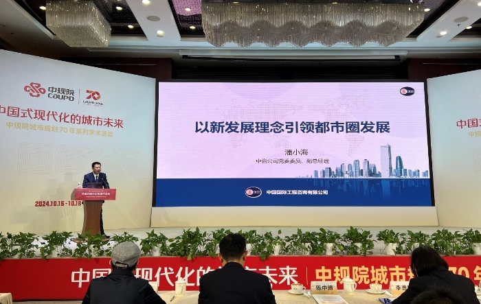2024年10月16日,應中國城市規(guī)劃設計研究院(以下簡稱中規(guī)院)邀請,中咨公司黨委委員、副總經(jīng)理潘小海代表公司參加“中國式現(xiàn)代化的城市未來——中規(guī)院城市規(guī)劃70年學術(shù)活動”,并圍繞會議主題“新型城鎮(zhèn)化與區(qū)域協(xié)同發(fā)展”,作題為“以新發(fā)展理念引領都市圈發(fā)展”的主旨演講。