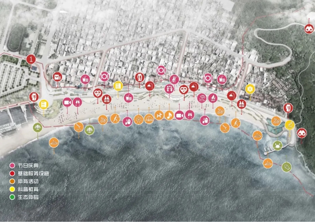 設(shè)計(jì)團(tuán)隊(duì)為滿足多節(jié)點(diǎn)、多層次、多樣性的旅游和生產(chǎn)生活需求,在時(shí)間上,堅(jiān)持“全季節(jié)、全天候”的產(chǎn)業(yè)項(xiàng)目策劃,遵循當(dāng)?shù)貪O業(yè)作息規(guī)律,引導(dǎo)游客、村民進(jìn)行濱海技藝觀賞和節(jié)慶互動(dòng);在空間上,融合“山-陸-海-島”的聯(lián)動(dòng)發(fā)展模式,將海上娛樂(lè)、商業(yè)服務(wù)、自然觀光相結(jié)合,塑造山海一體的澳角村度假品牌形象。