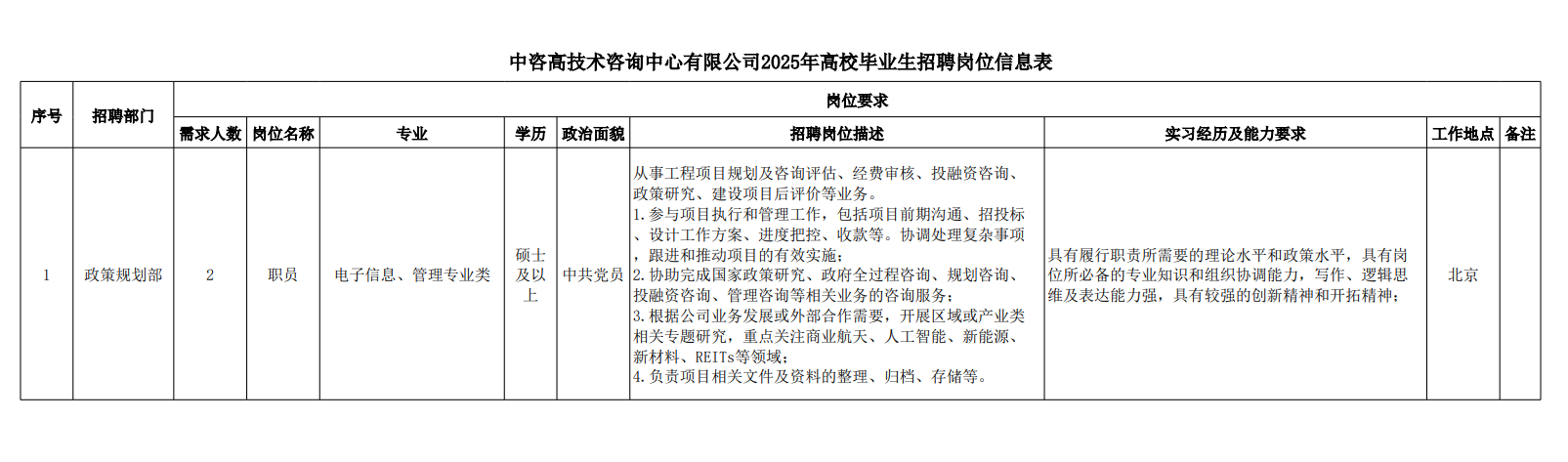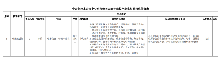 中咨高技術(shù)咨詢中心有限公司招聘崗位信息表.pdf