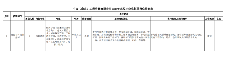 中咨(南京)工程咨詢有限公司招聘崗位信息表.pdf