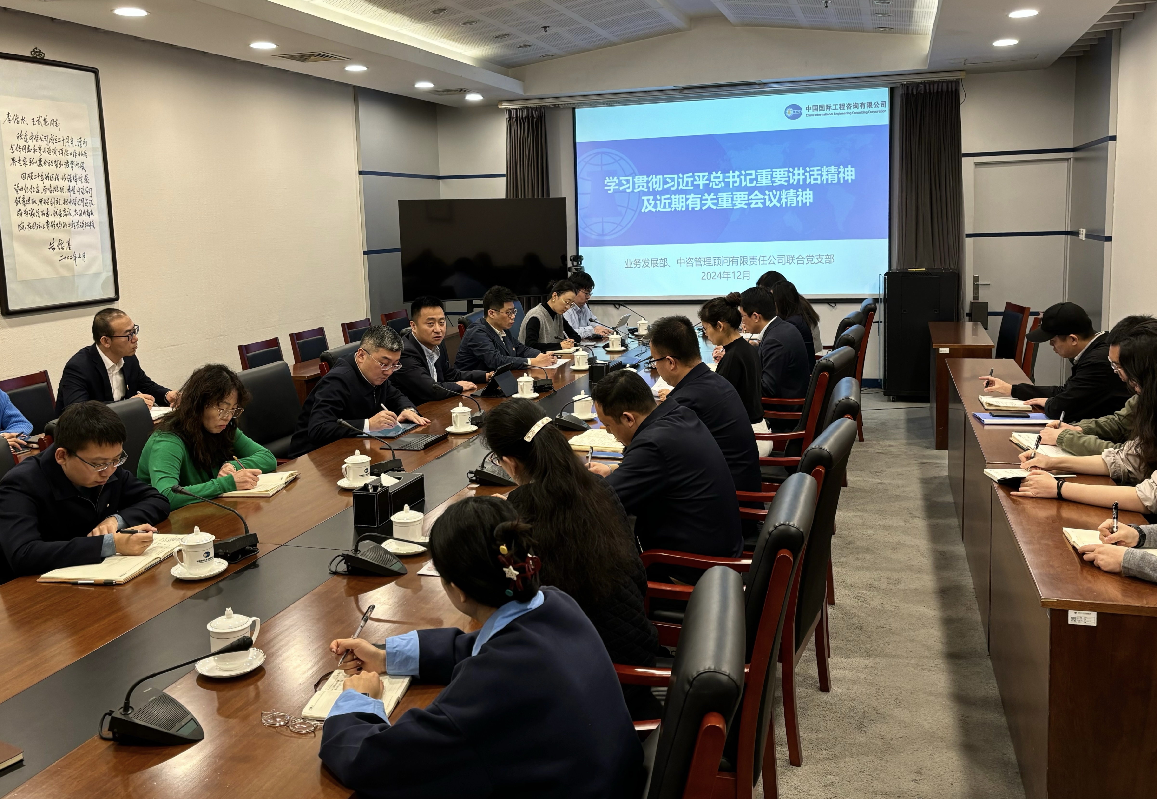 業(yè)務(wù)發(fā)展部和中咨管理顧問公司將學(xué)習(xí)融入工作實(shí)踐,化作履職擔(dān)當(dāng)。12月20日,聯(lián)合黨支部召開黨員大會(huì),集體傳達(dá)學(xué)習(xí)習(xí)近平總書記近期重要講話精神,研究貫徹落實(shí)三個(gè)重要會(huì)議精神舉措。聚焦增強(qiáng)企業(yè)核心功能、提升核心競爭力,進(jìn)一步理清推動(dòng)公司業(yè)務(wù)規(guī)模、管理創(chuàng)新、區(qū)域布局、質(zhì)量品牌等各項(xiàng)工作創(chuàng)新發(fā)展的思路,明確加強(qiáng)綜合性業(yè)務(wù)管理樞紐與合規(guī)體系建設(shè)、優(yōu)化業(yè)務(wù)管理體制、守牢安全生產(chǎn)底線以及推動(dòng)集團(tuán)化發(fā)展、區(qū)域化布局等重點(diǎn)任務(wù),為明年工作開篇蓄勢賦能。
