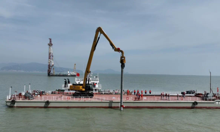 公司參與監(jiān)理的海上光伏場區(qū)項(xiàng)目首根管樁沉樁施工