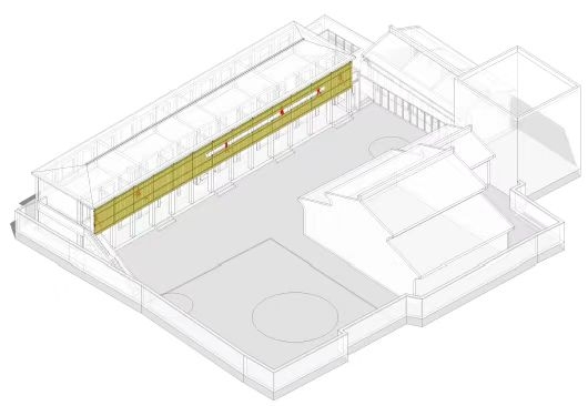 場景化原則本質(zhì)上是一種對空間的把控方式?!皩?shí)際的空間邊界”和“被感知的空間邊界”之間存在著多重關(guān)系[2]。它旨在通過具體的材料選擇和建造方法,在特定場所情境下加強(qiáng)新老建筑之間的聯(lián)系,形成緊密的一體化場景,并清晰界定新舊建筑的年代傳承。同時(shí),這種方法還能增加場景的敘事性和生活的兼容性,激發(fā)更多活力。