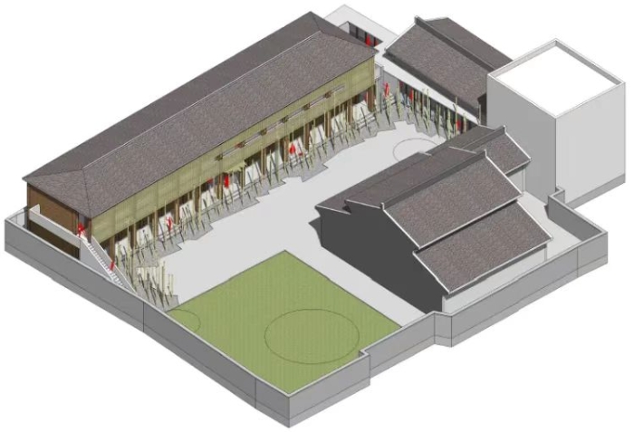 通過精心設(shè)計(jì),我們植入了包括城市記憶展示區(qū)、當(dāng)?shù)夭即鼞蛘故緟^(qū)以及駐地藝術(shù)家工作室等多個(gè)功能空間,并且以“竹”作為貫穿的主題元素,連接各個(gè)功能區(qū),以及建筑與外圍院落之間的過渡空間,促進(jìn)了空間之間的流暢過渡。通過這種方式,我們不僅實(shí)現(xiàn)了功能空間的有效整合,還激發(fā)了改造后的歷史建筑具備更多“即時(shí)性使用”的可行性與便利性,使既有各建造單元與功能空間之間,以及建筑與外圍院落及古城之間實(shí)現(xiàn)了“多項(xiàng)度”的連接,成為一個(gè)記錄城市生活的博物館。