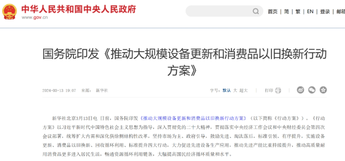 近日,國務(wù)院印發(fā)《推動大規(guī)模設(shè)備更新和消費品以舊換新行動方案》(以下簡稱《行動方案》),部署實施了設(shè)備更新、消費品以舊換新、回收循環(huán)利用、標(biāo)準(zhǔn)提升四大行動。其中,回收循環(huán)利用行動聚焦回收換新、二手流通、再生利用等環(huán)節(jié),堅持問題導(dǎo)向,精準(zhǔn)施策,進一步暢通資源循環(huán)利用路徑,推動廢舊產(chǎn)品設(shè)備高效回收、二手商品交易規(guī)范便利、資源再生利用水平顯著提升,為經(jīng)濟社會高質(zhì)量發(fā)展提供強勁動力和堅實支撐。