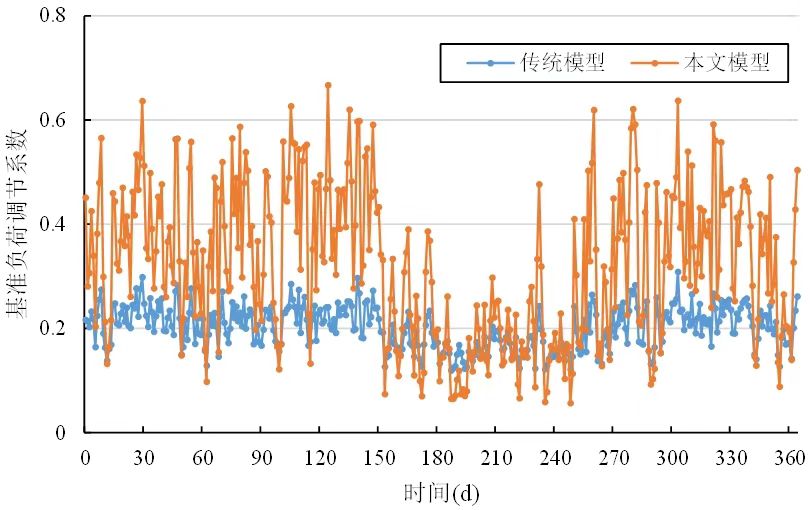 圖4 不同模型的年度基準(zhǔn)負(fù)荷調(diào)節(jié)系數(shù)